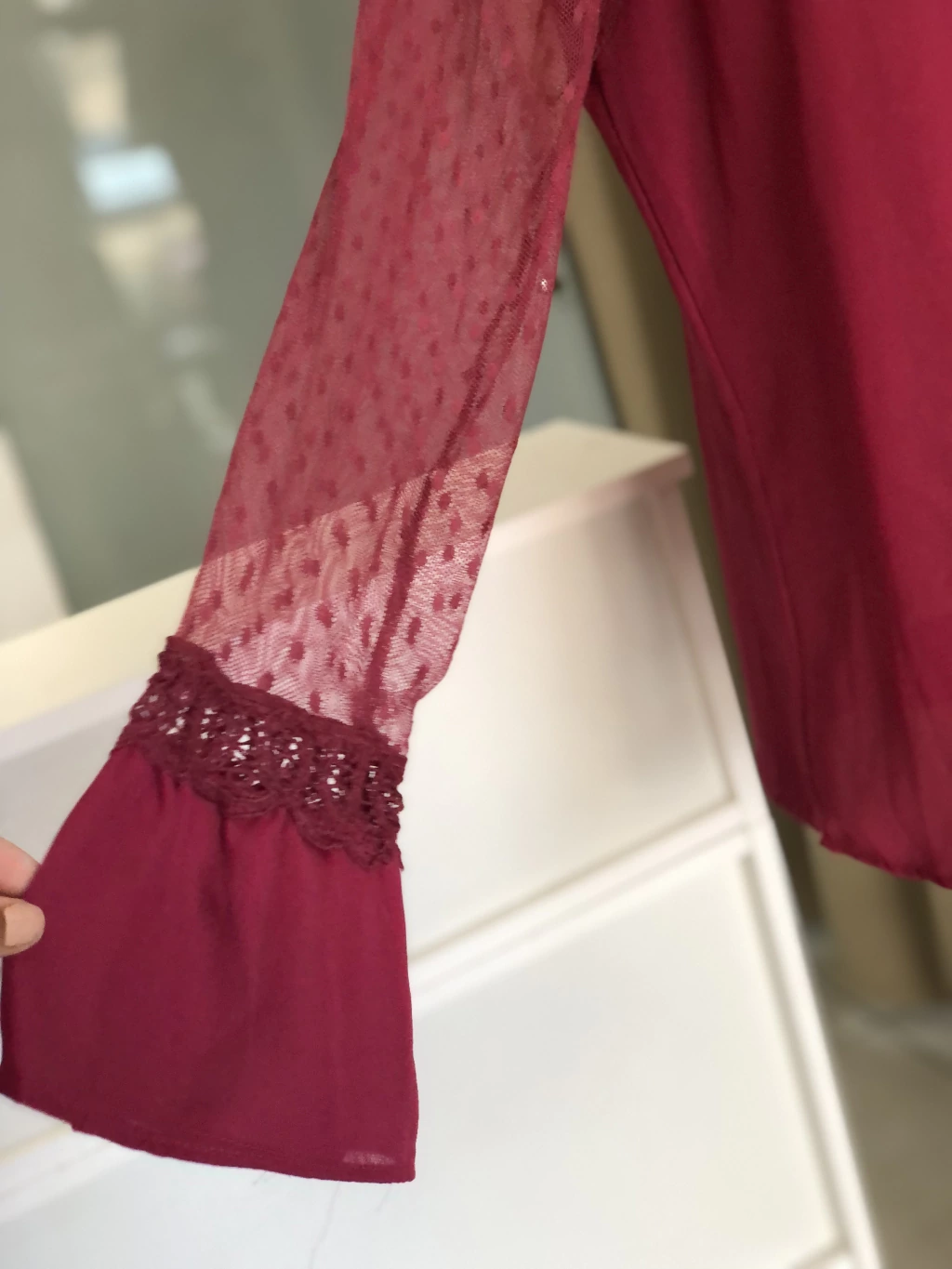 Blusa bordô renda e miçangas