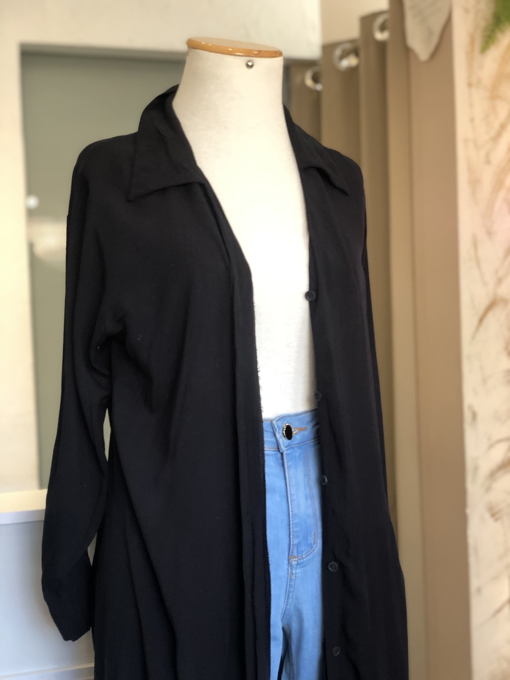 Chemise preta alongada em viscose - AMAKE