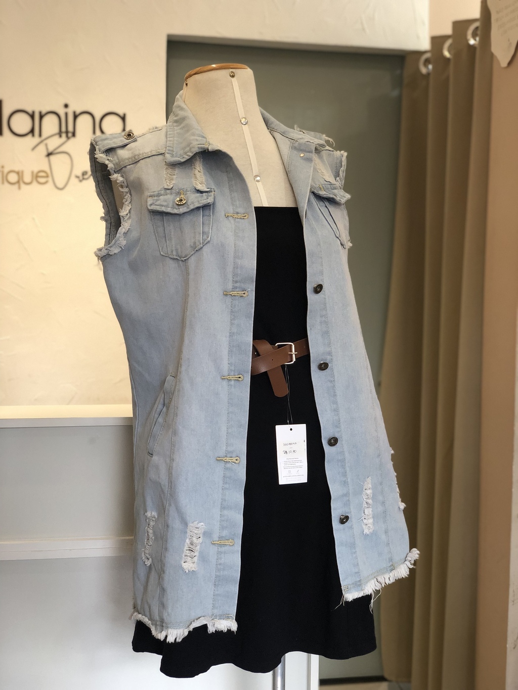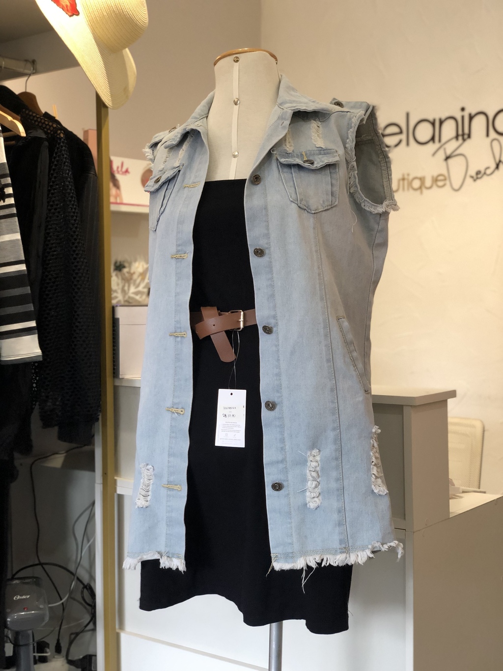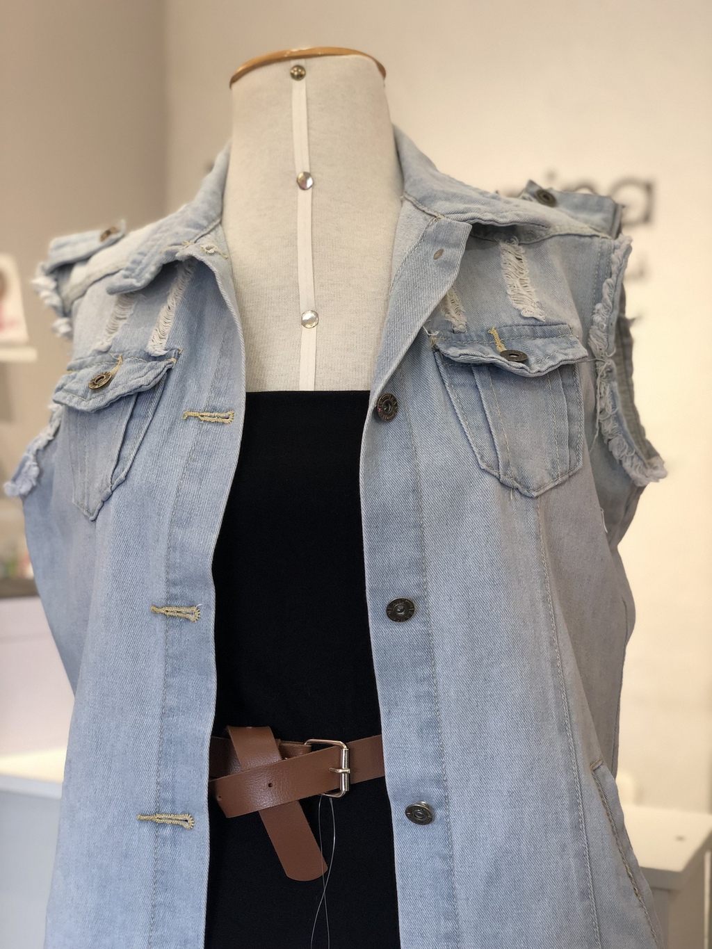 Max colete jeans lavagem clara