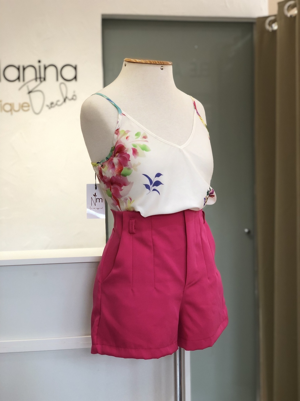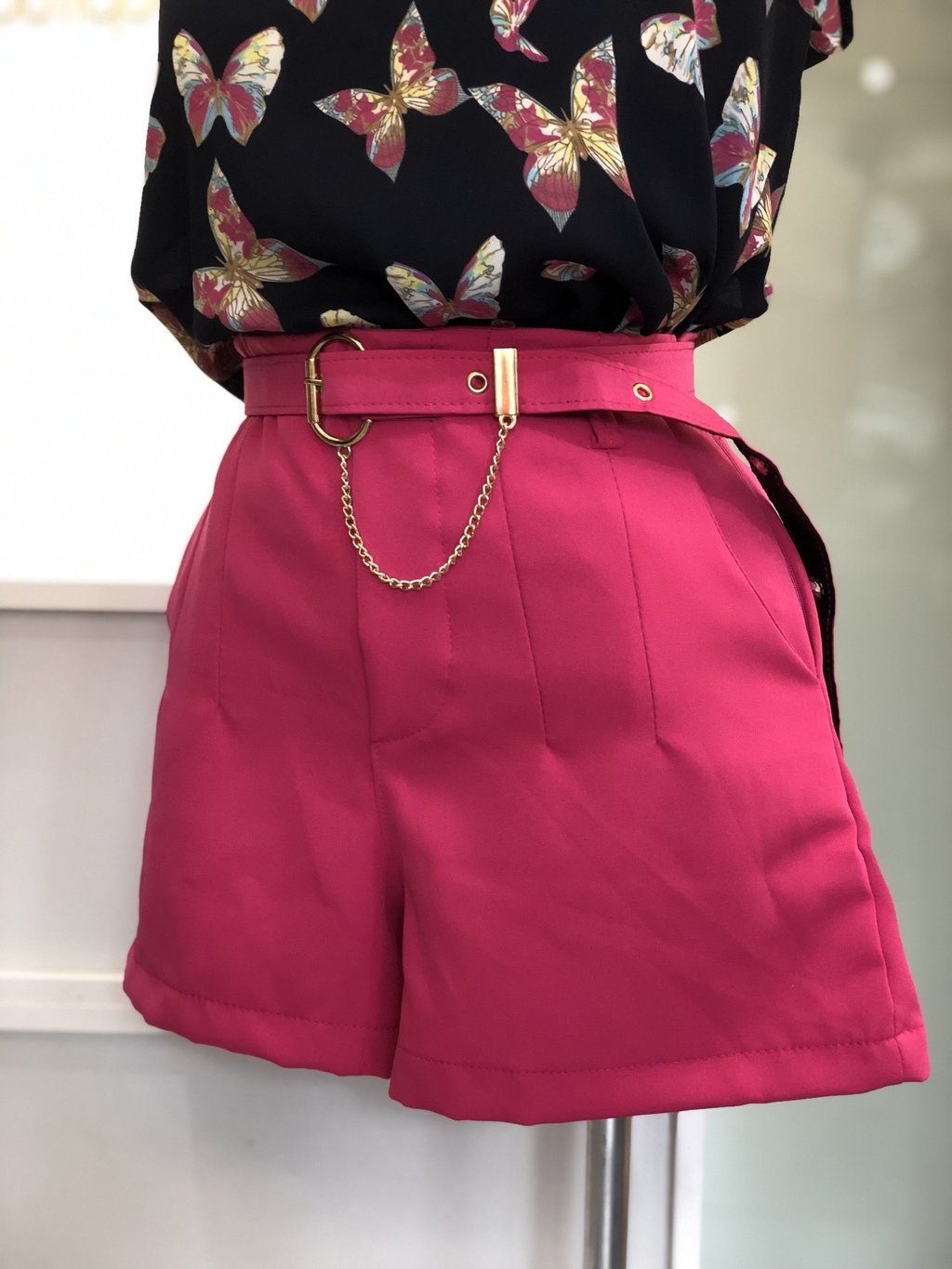 Short alfaiataria; bolsos laterais; com cinto; fechamento em zíper lateral. Material: 70% VISCOSE; 25% POLIAMIDA; 5% ELASTANO. ♥ Dica da Nina: veste P, sugiro numeração 38 Ninas!!!