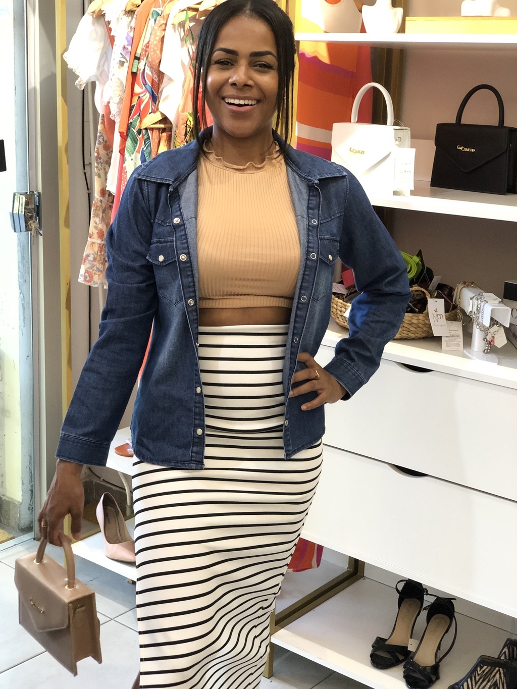 **NOVA** Saia midi jeans barra desfiada - CLÁUDIA RABELO