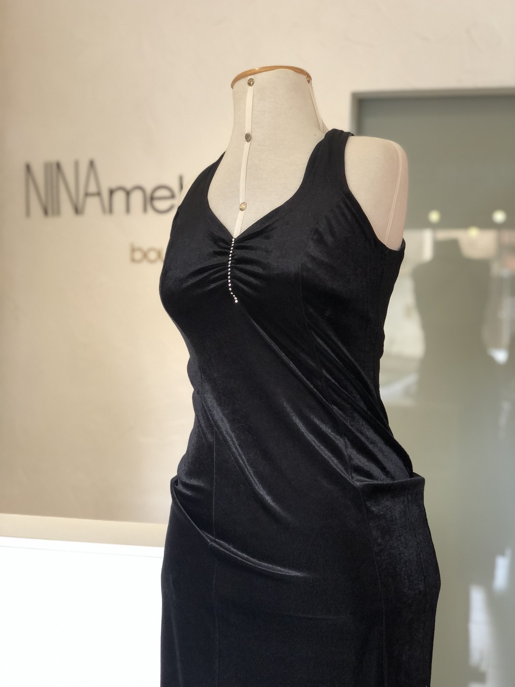 Vestido longo preto em veludo molhado