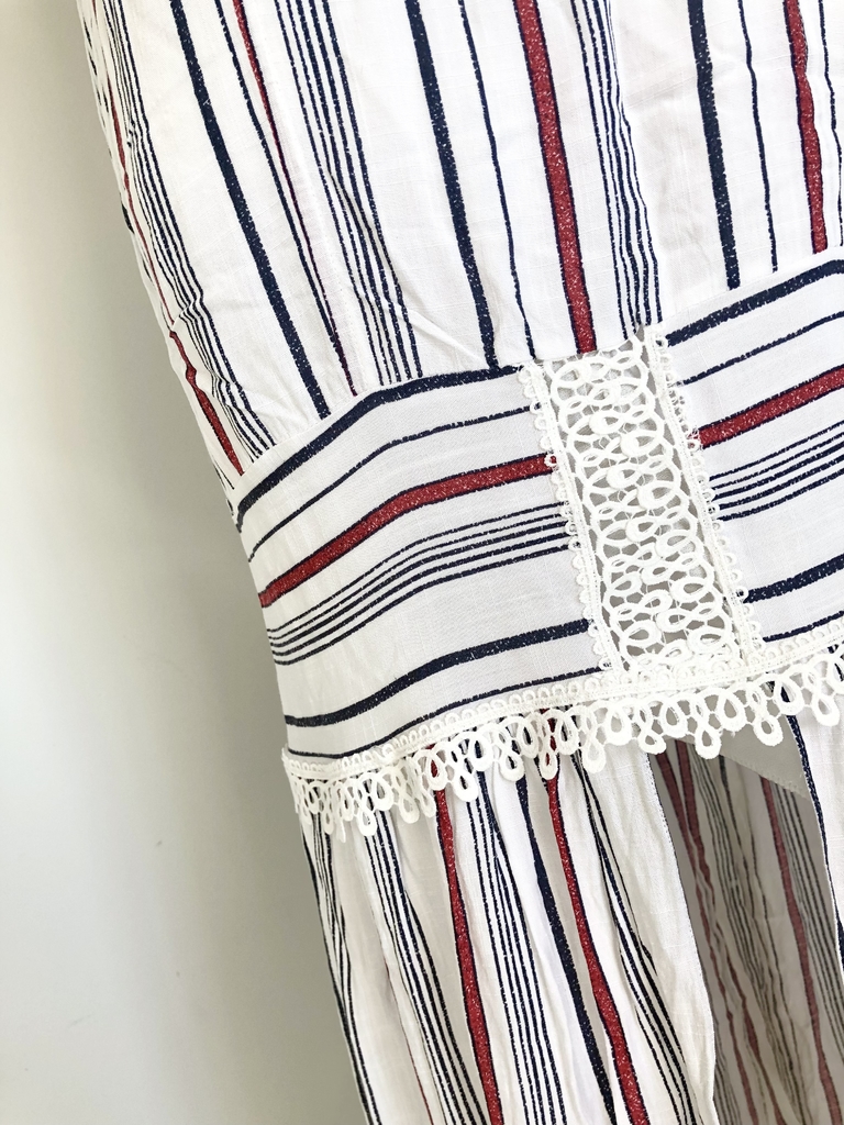 Vestido midi cores náuticas; alças com regulagens; com forro; decote reto; fechamento em zíper; fenda frontal. ♥Dica da nina: etiqueta tamanho 40, porém modelagem ampla, sugiro numeração 42/44.