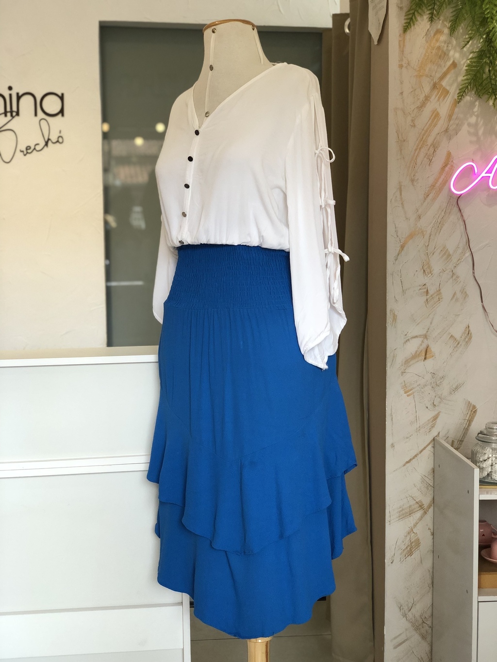 Conjunto cropped e saia dourados em renda guipir - Lenelle